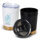 Stylish 350ml double wall, polypropylene and stainless steel coffee cup with natural bamboo base. Valetta features a translucent splashproof, push on, BPA-free slider lid with a secure silicone seal.